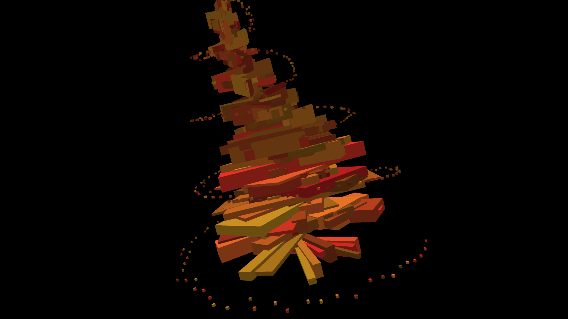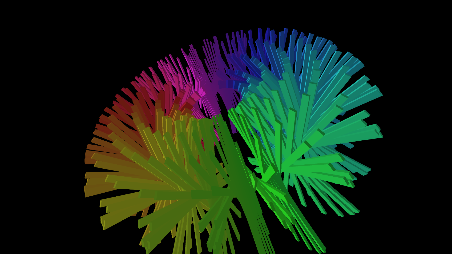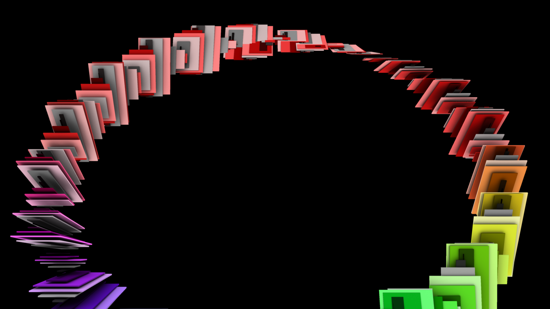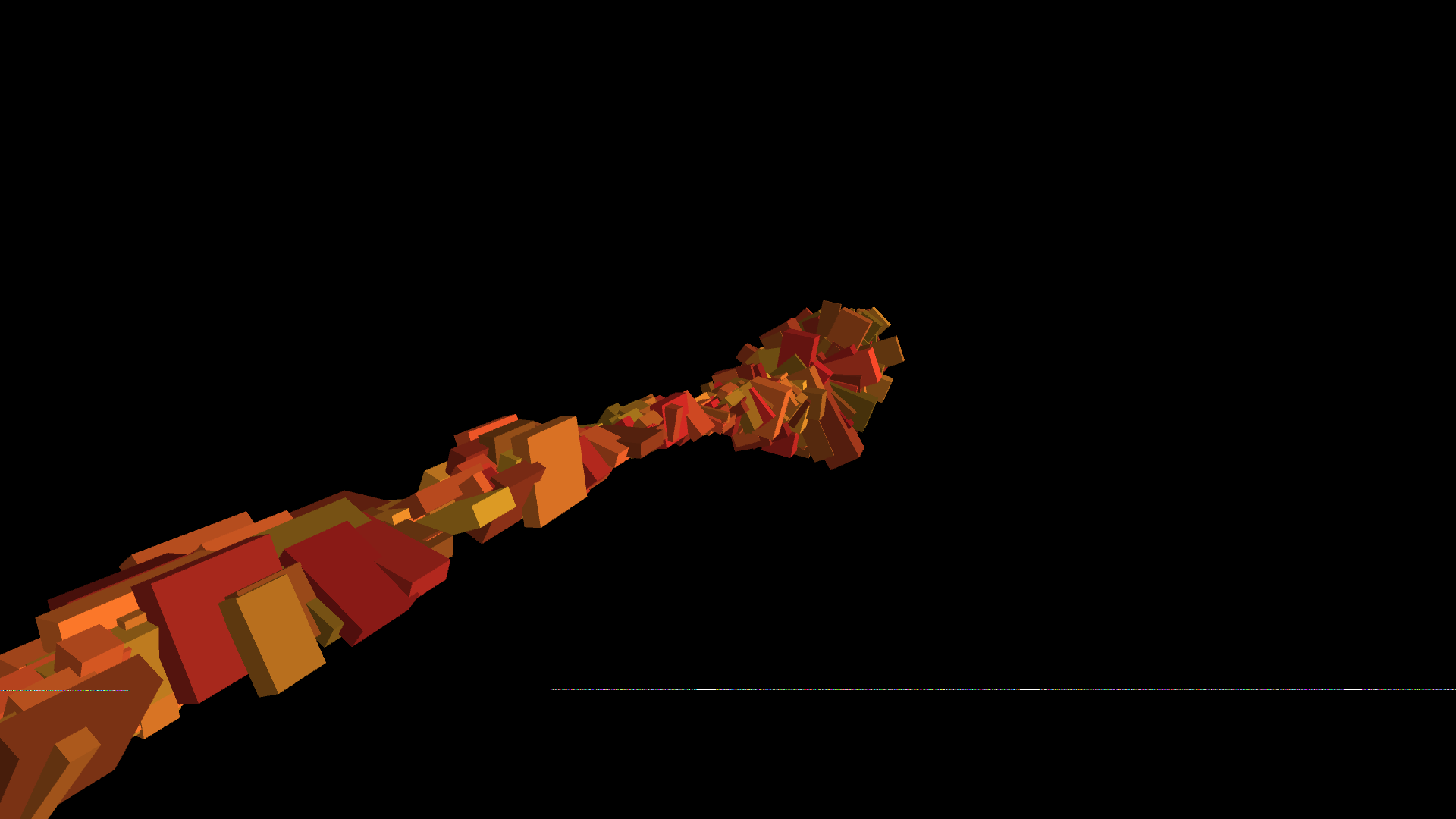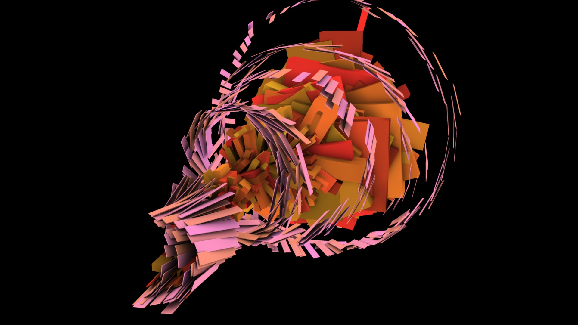 These stills are framegrabs from a music visualizer I wrote for Soundcheck. Since I had separate channels straight from the mixing board, I was given unprecedented access to the individual instruments that made up the tracks. Each instrument was visualized with a different color and ruleset.