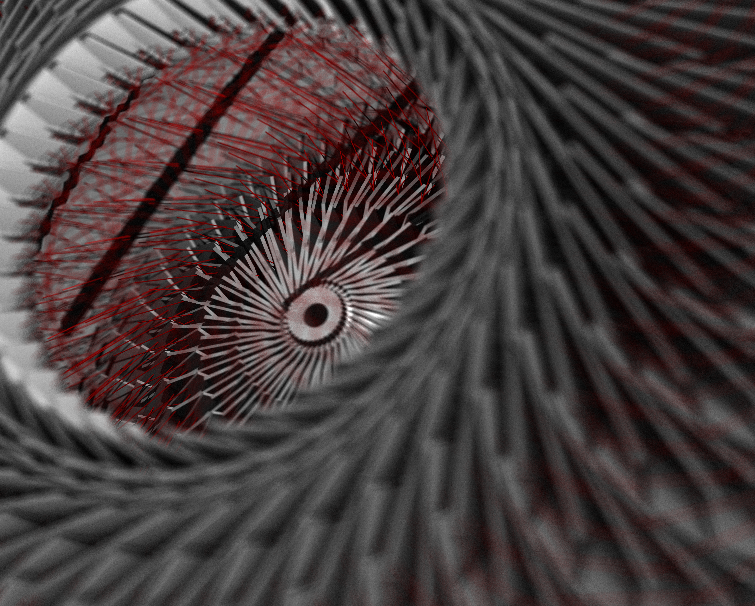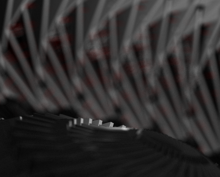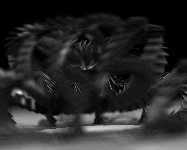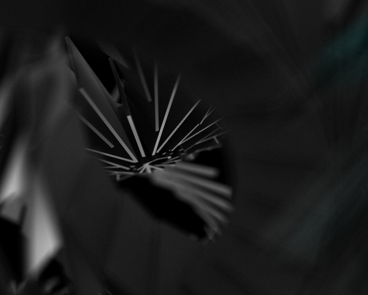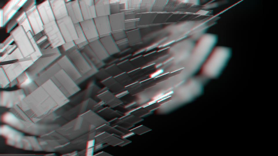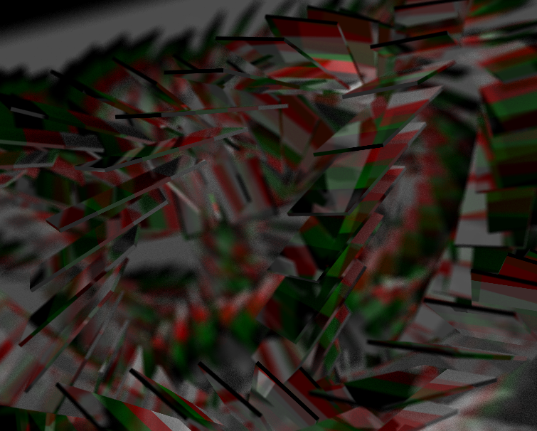 One of my most successful forays into procedural geometry creation, this form was created in Structure Synth, exported to Maya for rendering, and then composited in Nuke. The mostly-monochrome image is an anaglyph, if you have glasses handy.